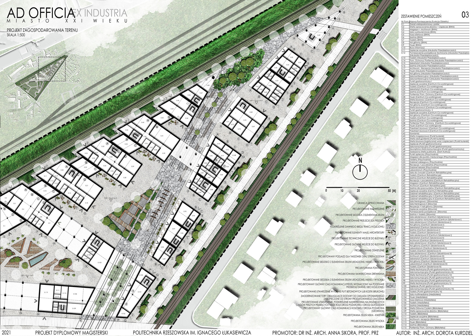 Praca pod tytułem "Ad officia ex industria- miasto XXI wieku" została wykonana pod opieką dr inż. arch. Anny Sikory, prof. PRz.