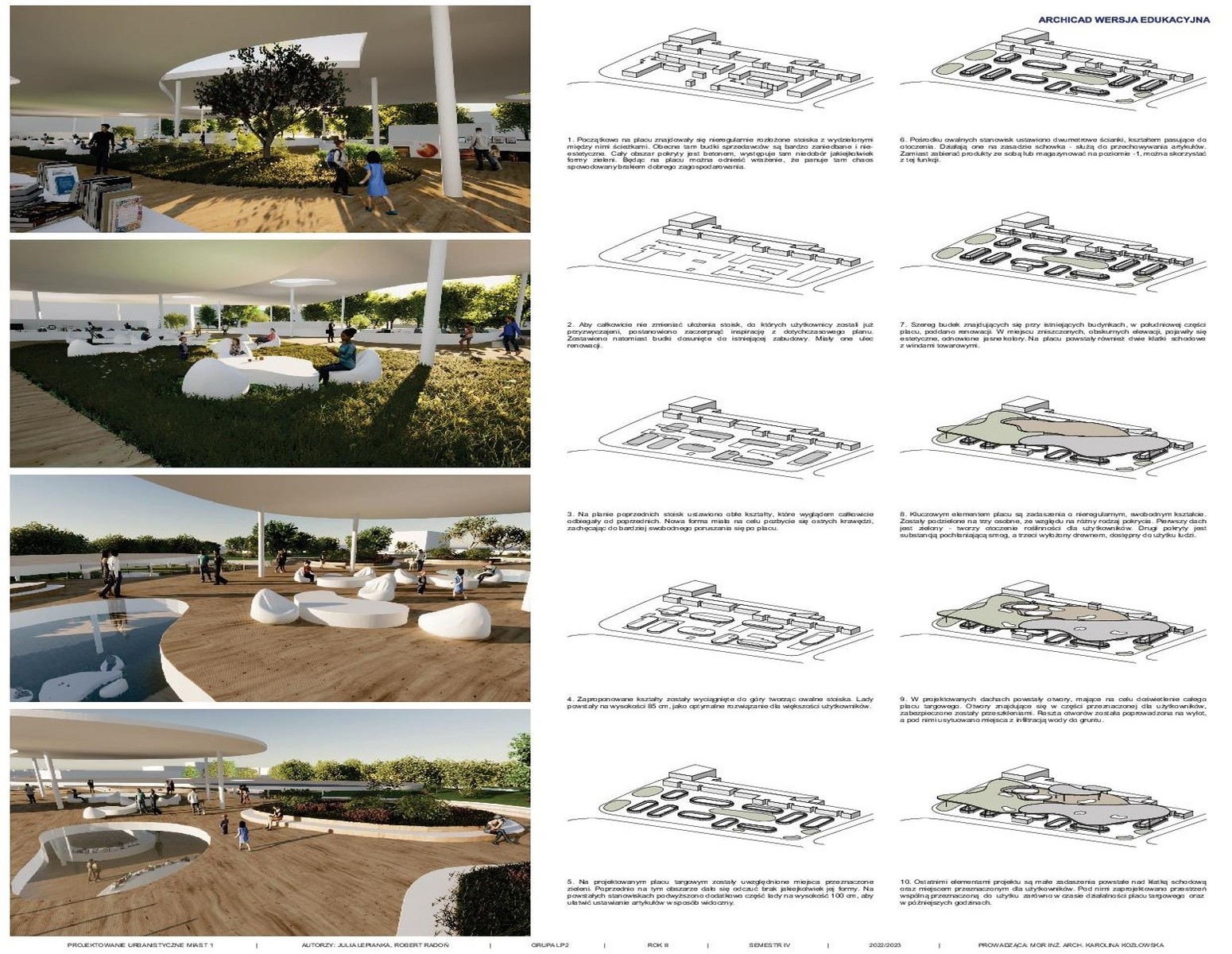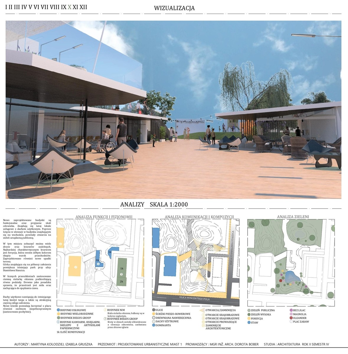 Studenci mieli za zadanie zaprojektować zespół zabudowy usługowej skoncentrowanej na handlu ulicznym, bezpośrednim, który charakteryzował odpowiedni poziom różnorodności funkcjonalnej i estetycznej. Jednocześnie przeprowadzenie projektowej interwencji wymagało uwzględnienia istniejącego kontekstu zabudowy śródmiejskiej i kształtowania zespołu zgodnie z zasadami kompozycji urbanistycznej. Przyjęte rozwiązania miały wspierać budowanie czytelnej szaty informacyjnej zespołu i tożsamości miejsca. Jednocześnie projekty miały odzwierciedlać współczesne wymagania ekologiczne (jak na przykład chłonność nawierzchni). Istotną właściwością projektów było wspieranie kontaktów społecznych i stworzenie przestrzeni sprzyjającej wzmacnianiu więzi społecznych poprzez stworzenie miejsc dostępnych i bezpiecznych dla użytkowników.
