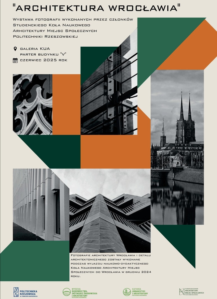 Wystawa potrwa do 16 czerwca 2025r. Serdecznie zapraszamy do obejrzenia wystawy w budynku V i zachęcamy do poznania architektury Wrocławia z bliska!