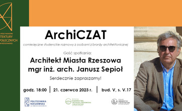 Pierwsze spotkanie z cyklu wydarzeń ArchiCZAT - gościem specjalnym był Architekta Miasta Rzeszowa mgr inż. arch. Janusz Sepioł