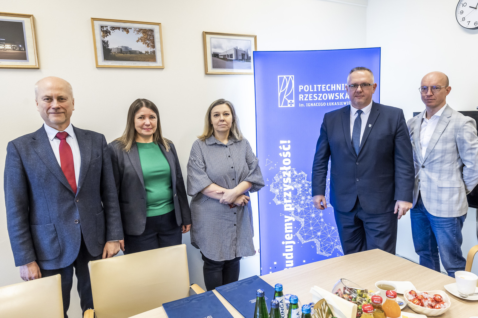 3 lutego 2025 r. Politechnika Rzeszowska podpisała umowę o współpracy z gminą Sokołów Małopolski. Sygnatariuszami listu intencyjnego byli prorektor ds. rozwoju i współpracy z otoczeniem prof. dr hab. inż. Jarosław Sęp oraz burmistrz gminy i miasta Sokołów Małopolski Andrzej Kraska. W spotkaniu uczestniczyli również dr inż. arch. Anna Sikora, prof. PRz, kierownik Katedry Urbanistyki i Architektury, dr inż. Wanda Kokoszka i przedstawiciel gminy Łukasz Bis.