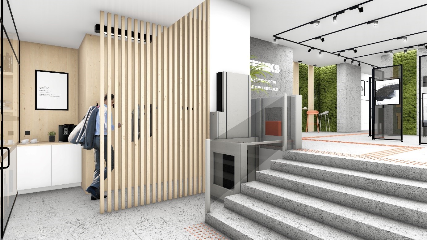 Koncepcję Międzynarodowego Centrum Integracji opracował zespół dwóch studentów kierunku architektura – inż. arch. Wiktoria Jankowska oraz inż. arch. Przemysław Dybaś, natomiast przebieg oraz postępy pracy nadzorował mgr inż. arch. Łukasz Bajda – pracownik Zakładu Urbanistyki i Architektury na Politechnice Rzeszowskiej. Projekt koncepcyjny zawiera m.in. strefę wystawową, miejsca spotkań, strefę relaksu oraz sale konferencyjne z zapleczem kuchennym. Zarówno wnętrze lokalu, jak i strefę wejściową zaprojektowano w taki sposób, aby zlikwidować wszelkie bariery architektoniczne i zapewnić pełną dostępność dla osób niepełnosprawnych. W projekcie przewidziano m.in. dźwig osobowy, system ścieżek dotykowych dla osób niewidomych oraz szereg oznaczeń w alfabecie Braille’a. Zwrócono również uwagę na odpowiednie szerokości korytarzy oraz przestrzeni manewrowych. Miejsce to ma służyć przede wszystkim integracji, ale również nauce języka polskiego, poradom psychologicznym, szkoleniom zawodowym itp.