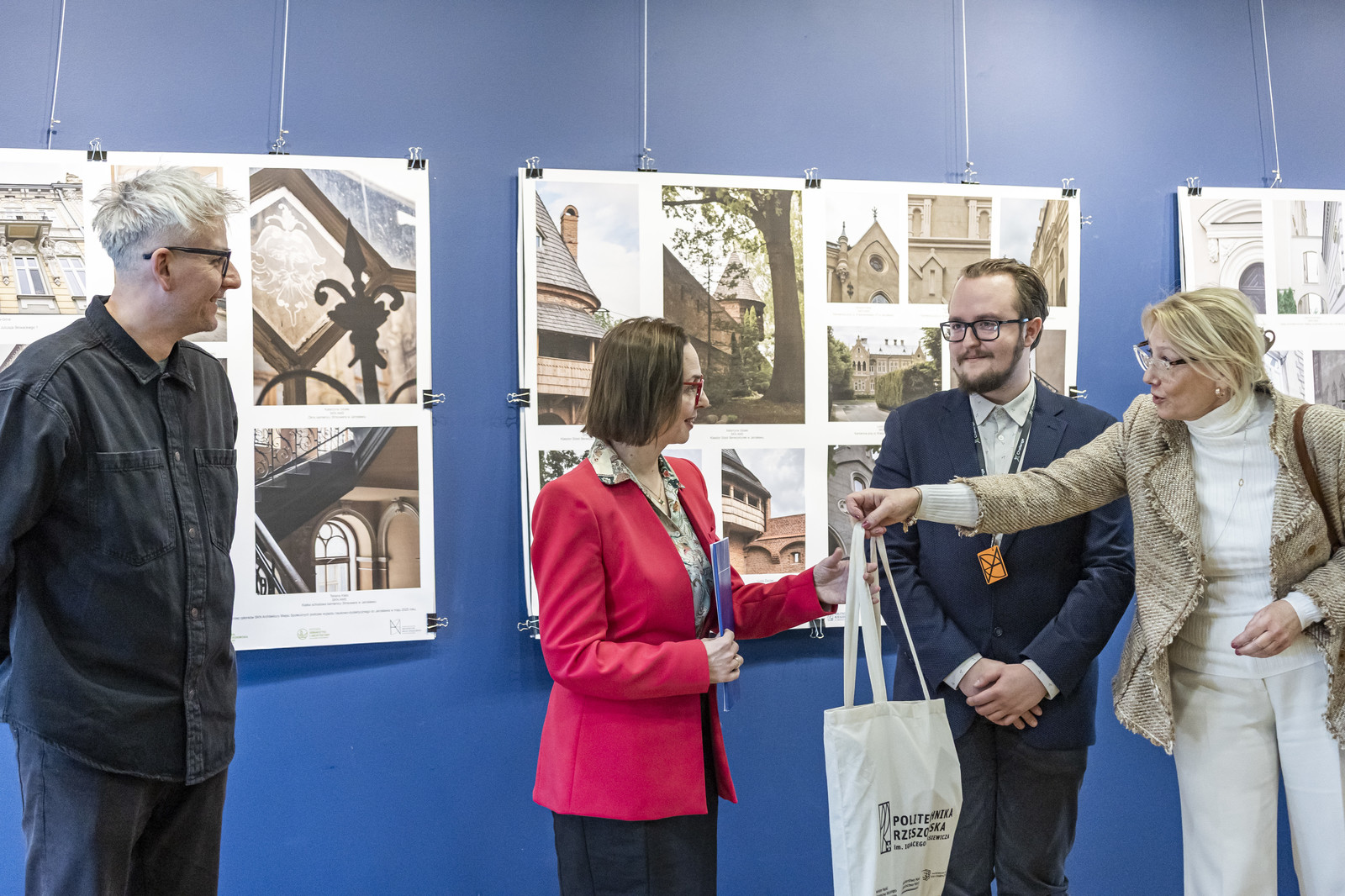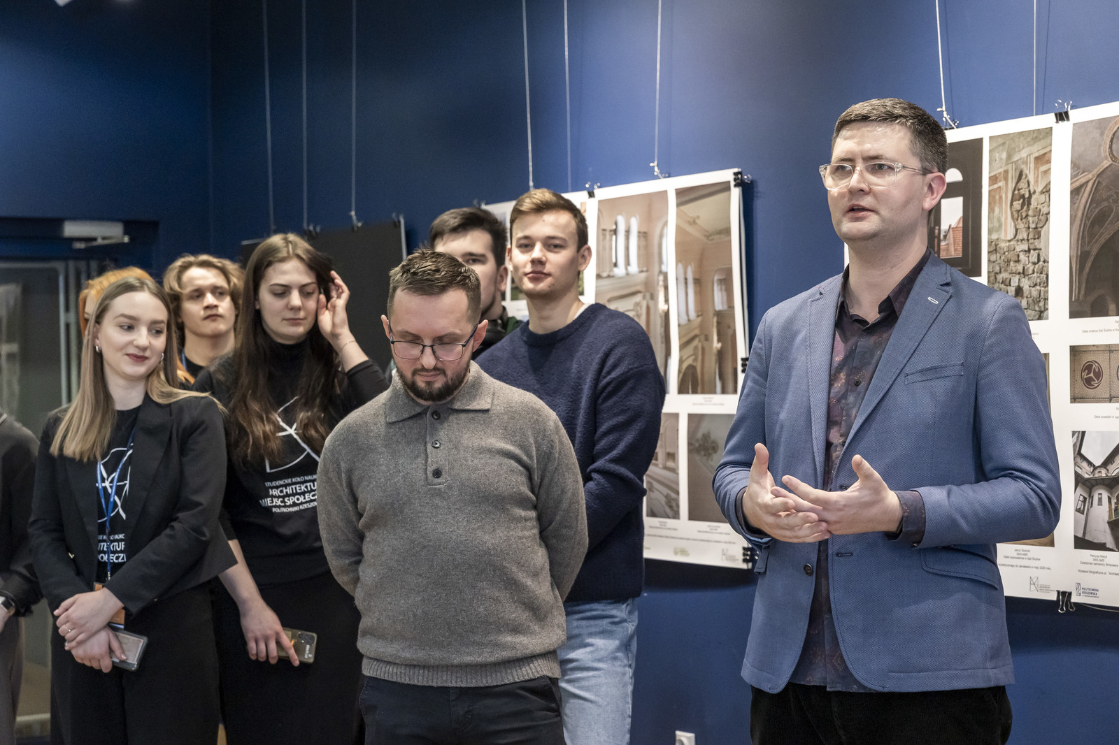 Uroczyste otwarcie wernisażu wystawy fotograficznej „Architektura Jarosławia” odbyło się 21 stycznia 2026 r. w galerii P_okaz. Spotkanie rozpoczęto oficjalnym powitaniem zaproszonych gości podczas którego Dziekan WBIŚIA prof. dr hab. inż. Lech Lichołai wyraził podziękowania dla organizatorów wydarzenia. Dr inż. arch. Beata Walicka-Góral przywitała wszystkich obecnych i przedstawiła przybyłych gości oraz podziękowała wszystkim za przybycie. Podziękowała członkom Koła Architektury Miejsc Społecznych za ogromne zaangażowanie w przygotowanie wystawy i osobom dzięki którym mogły powstać zdjęcia prezentowane na wystawie. Wśród nich wymieniła Aleksandra Busza, Damiana Pękalskiego oraz Przemysława Gąsiorskiego pracowników Wojewódzkiego Urzędu Ochrony Zabytków i członków Przemyskiego Towarzystwa Kulturalnego.