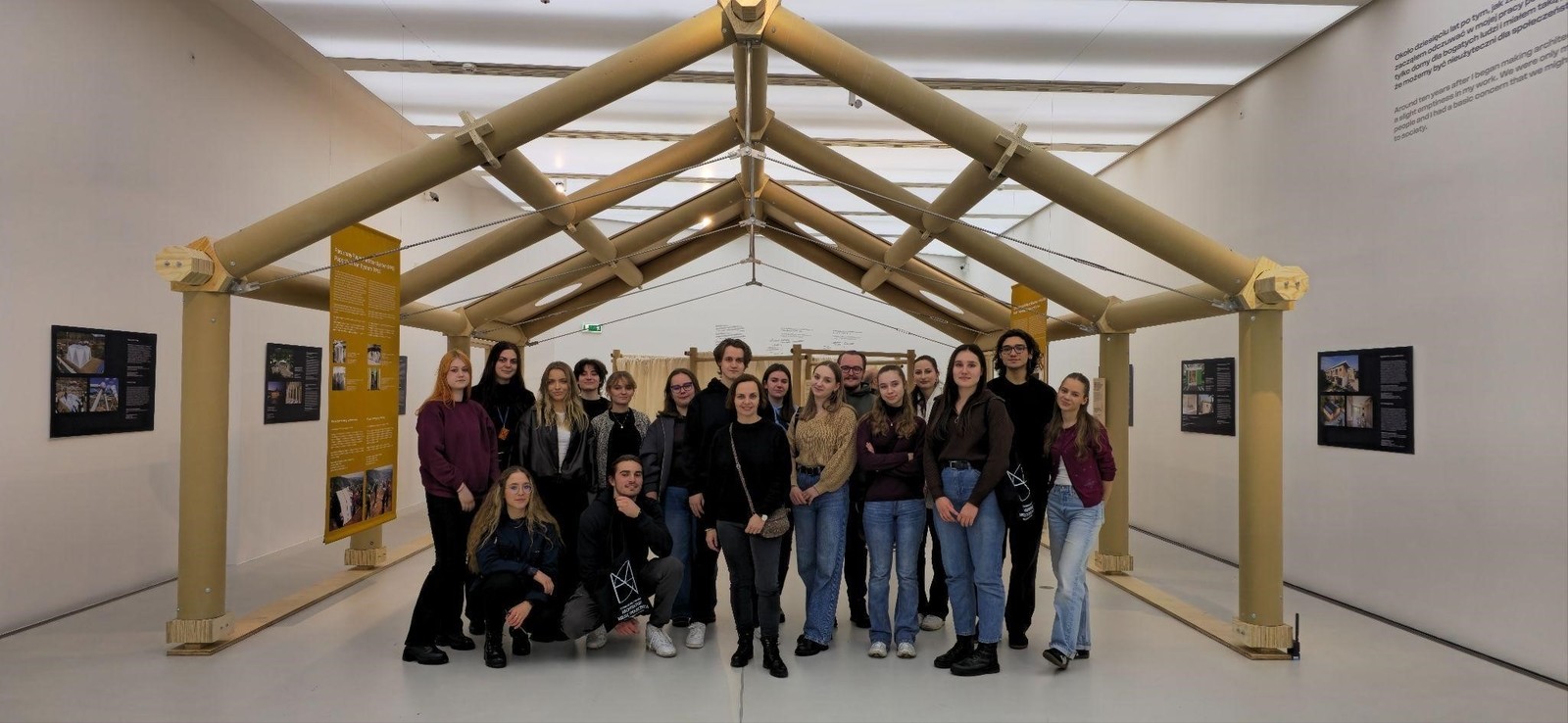 Podczas oprowadzania przedstawiona została sylwetka Shigeru Bana – japońskiego architekta znanego z projektów o silnym wymiarze społecznym oraz innowacyjnego podejścia do materiału i konstrukcji.