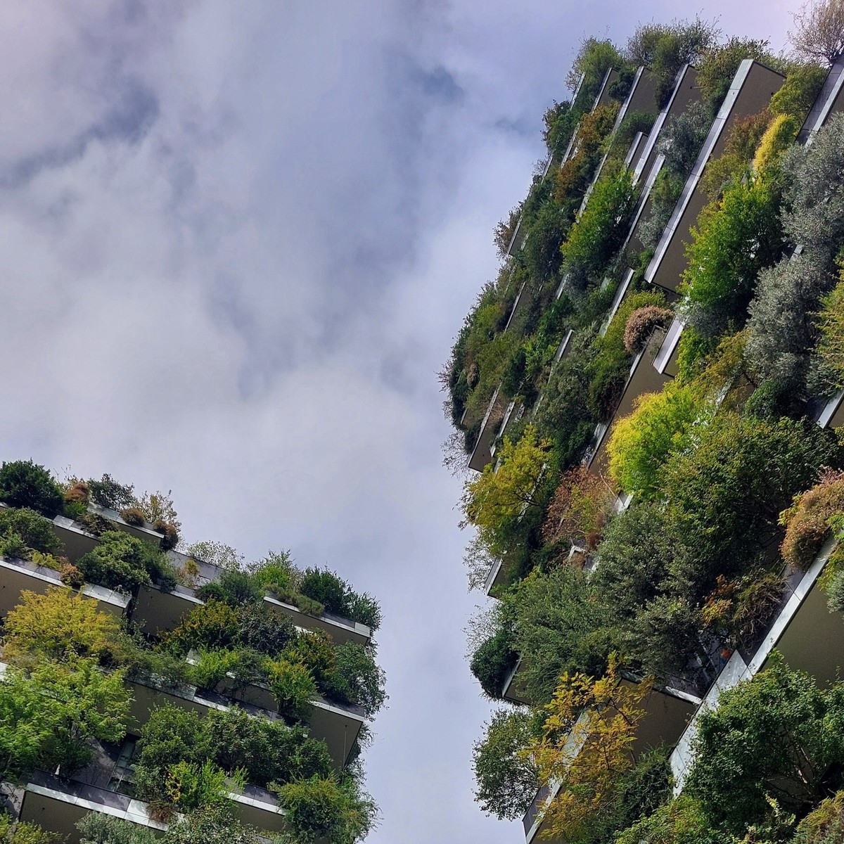 Opis do zdjęcia: Zdjęcie przedstawia Bosco Verticale, czyli znaną parę mieszkalnych wieżowców w dzielnicy Porta Nuova w Mediolanie, we Włoszech.